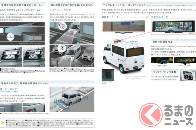 加えて、荷物積載時や夜間の後方視界をサポートする「デジタルルームミラー」などをメーカーオプション設定し、予防安全性能も充実させました。