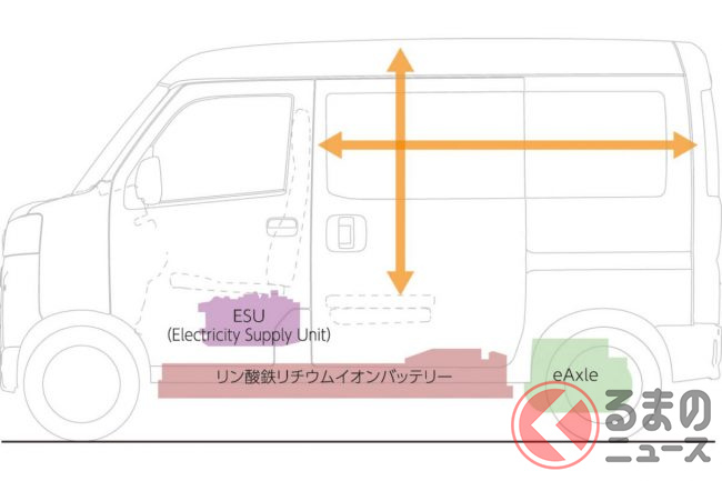 新型eエブリイは、スズキ、ダイハツ、トヨタの3社で共同開発したBEVシステムを搭載した軽商用バンの電気自動車モデルです。