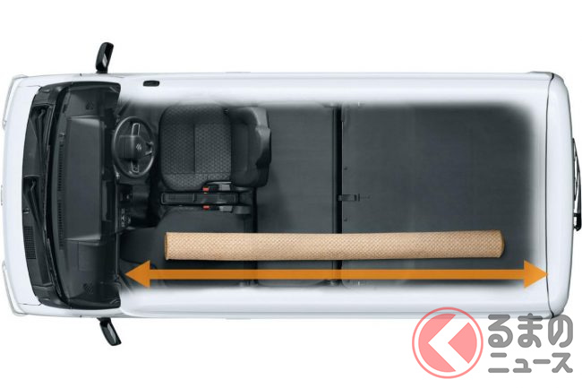 荷室は最大積載量350kgを確保し、エンジン車の軽バンと変わらない広々とした荷室空間を備えます。