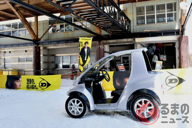 2026年3月7日および8日の2日間、パルコール嬬恋リゾートスキー場(群馬県嬬恋村)でダンロップ「シンクロウェザー」の体験イベントがおこなわれました。155/65R14サイズの「シンクロウェザー」をトヨタのコムスに装着し、よりさまざまな人に手軽に次世代オールシーズンタイヤを体験してもらおうという取り組みです。