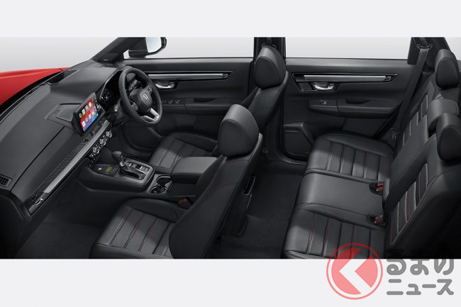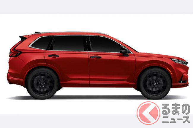 新型CR-Vは、プレミアムSUVとしての魅力を高めるため、エクステリアとインテリアにも改良が加えられています。エクステリアには、大胆で洗練されたスタンスを引き立てる新色「ブレイジングレッド・パール」が登場しました。