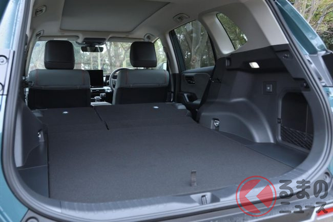 全長4600mm×全幅1855mm×全高1680mmという寸法は先代とほぼ同等です。一方で荷室容量は749Lへ拡大し、後席を倒した際の床面をよりフラットにすることで長尺物の積載性を高めました。