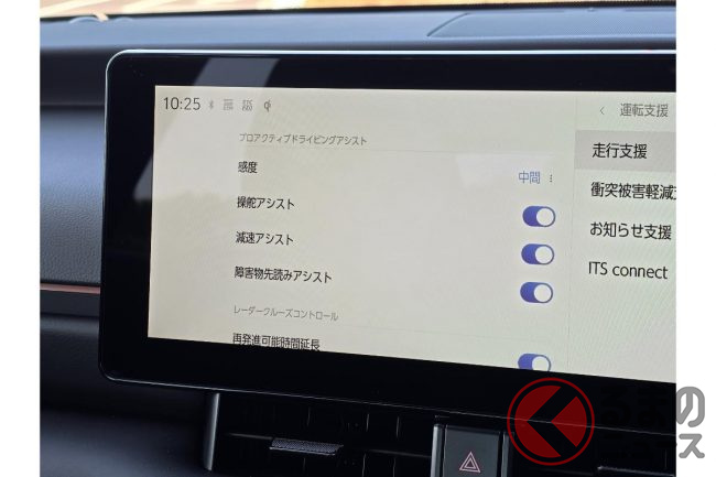 PDA(プロアクティブドライビングアシスト)やアドバンスドドライブ(渋滞時ハンズオフ機能)、レーンチェンジアシスト採用に加えて、プリクラッシュセーフティの対象範囲・支援機能拡大が行なわれています。