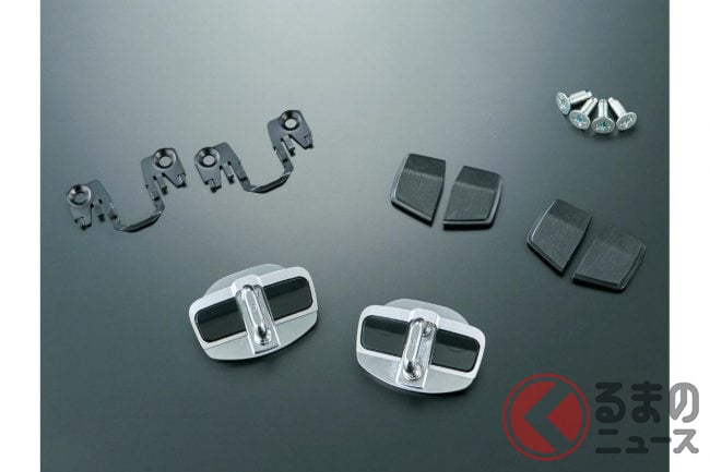 GRドアスタビライザー(3万3000円)は、ドアストライカーの隙間を埋める部品で、ステアリング操作時のレスポンス向上に寄与します。