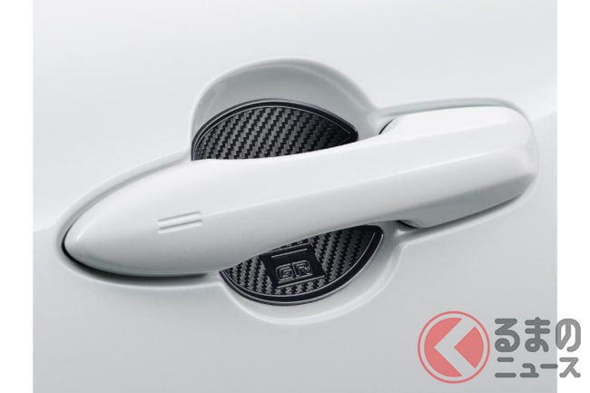 また、ドア周りのひっかき傷を防止するGRロゴがエンボスされたGRドアハンドルプロテクター(3300円、フロントのみ)や、CFRP製のGRカーボンナンバーフレーム(フロント用・リア用それぞれ1万9800円)など、細部のアクセサリーもそろえることで、全体を通して統一感のあるエクステリアに仕上げることができます。