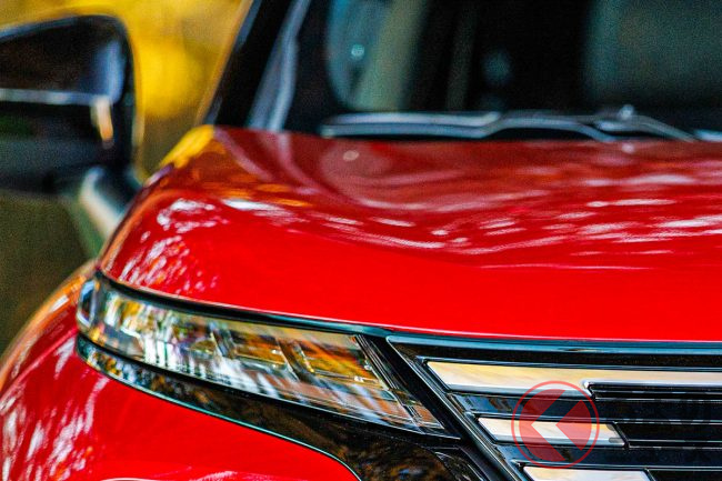 内外装デザインは基本的にアウトランダーPHEVと同じですが、一部で差別化が図られています。例えばフロントグリルに日産独自のデジタルVモーションを採り入れるとともに、ロアプロテクターやホイールをブラックの専用デザインとすることで、精悍な印象をもたらしています。