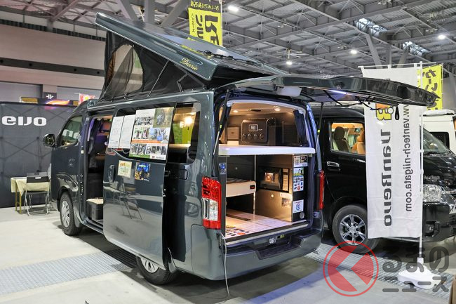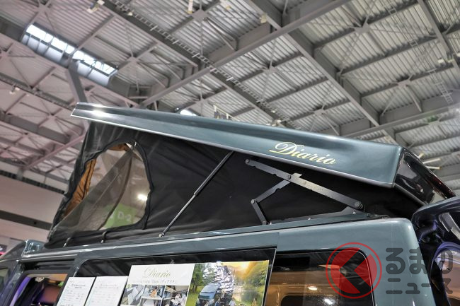新潟県上越市から遠征してきたキャンピングカービルダー「バンテック新潟」のブースでは、ポップアップルーフや180Wフレキシブルソーラーパネル、「雪国断熱」などをフル装備したバンレボ「Diario Pop(ディアリオ ポップ)」に注目です。