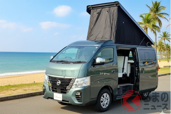 日産の「“2階建て”6人乗りバン」!? 全長4.7m「お手ごろボディ」に「家族6人」で寝られる! 車中泊で使える「たっぷり電池」&「ヒーター」搭載も嬉しい豪華仕様! バンレボのキャラバンキャンパー「ディアリオ ポップ」どんなクルマ?