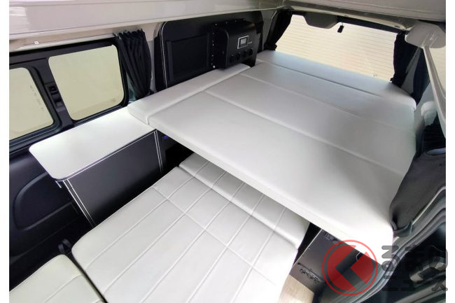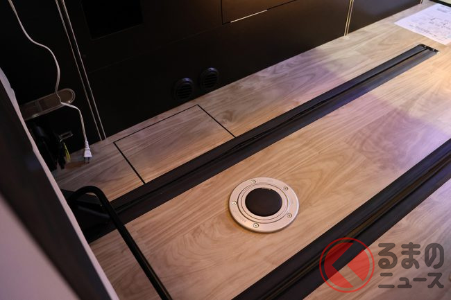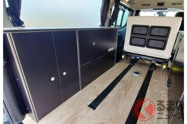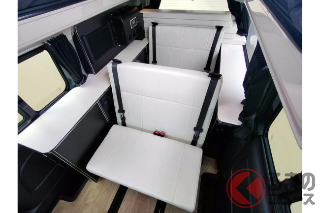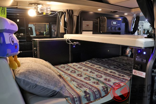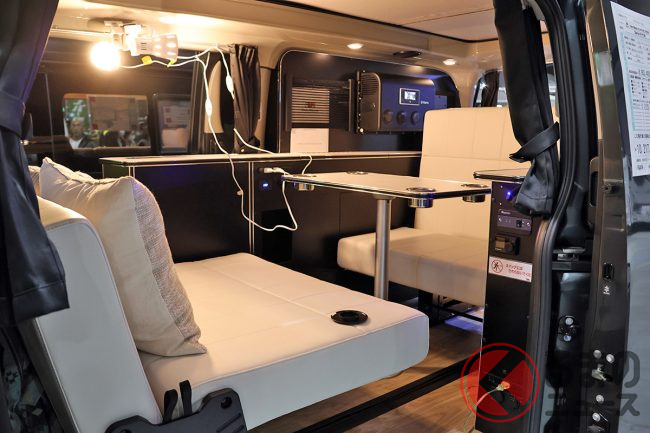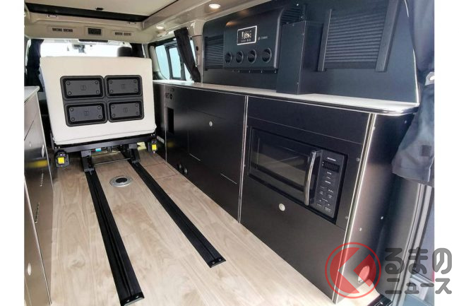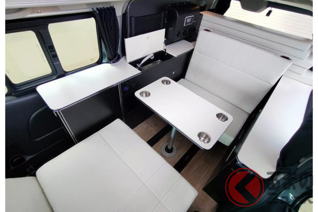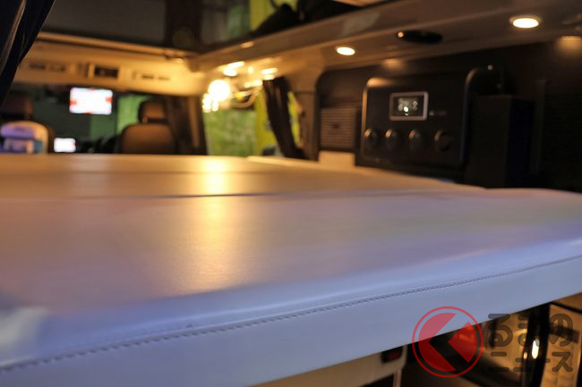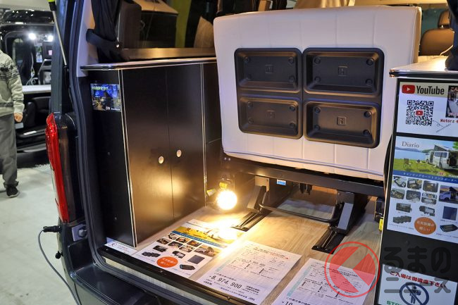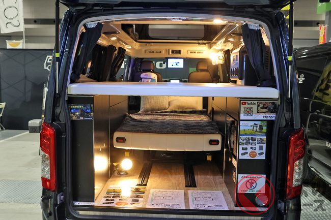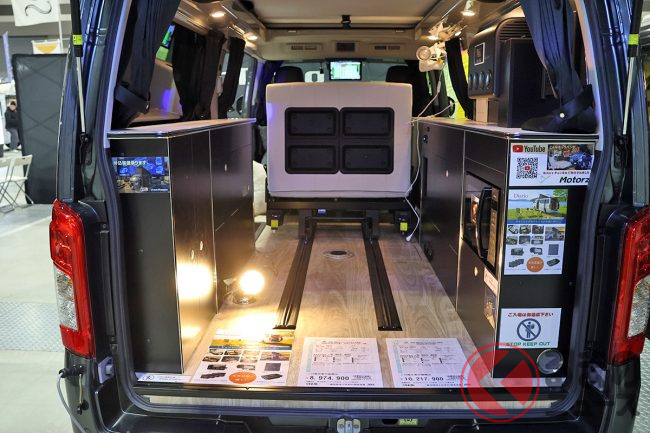 会場の担当者によると、「ミドルクラスキャンパーは後からこれが欲しい、あれが欲しいとなってオプションが積み重なっていきがちなので、今回は最初から“ここまでできる”というコンセプトで造り上げてみました」とのこと。