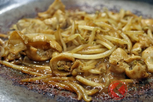 食べ頃になったとんちゃんは、ちょっと焦げた味噌ダレ&もやしとともに奏でるハーモニーが絶品。ハンドルキーパーがいれば、間違いなくビールを頼んでいたことでしょう。