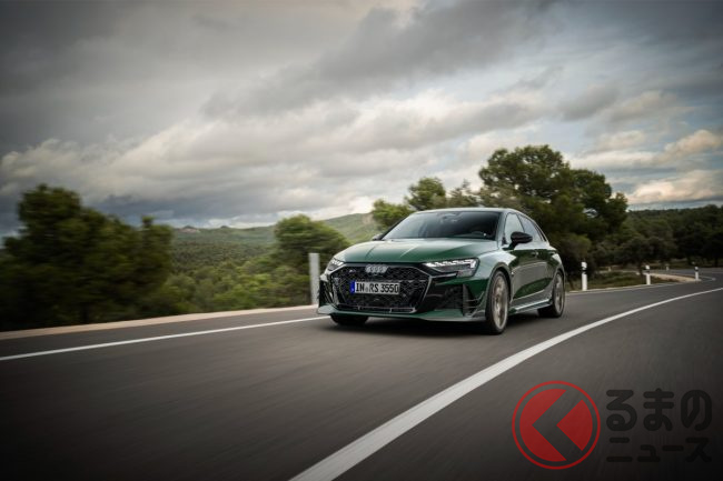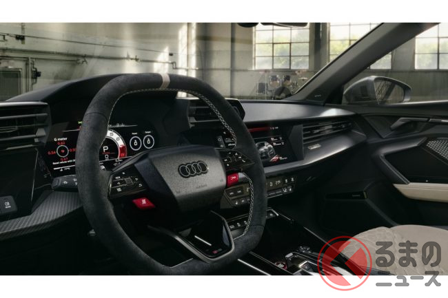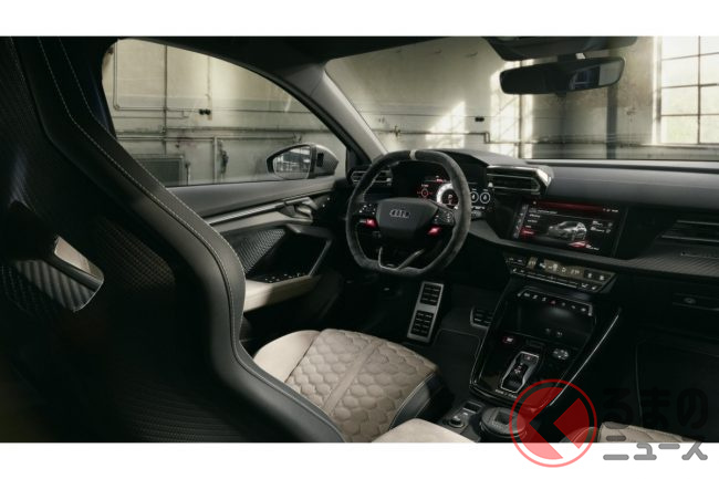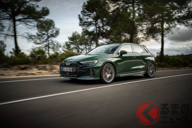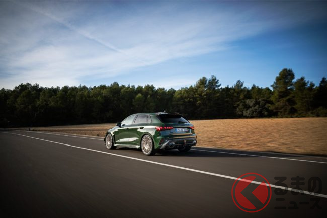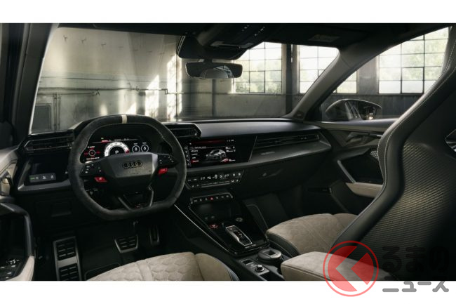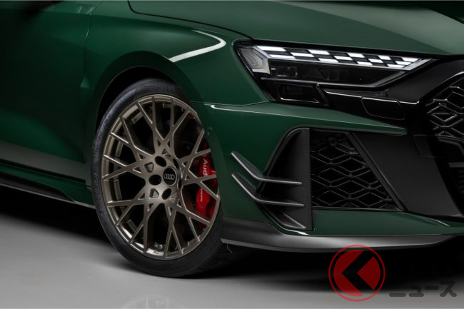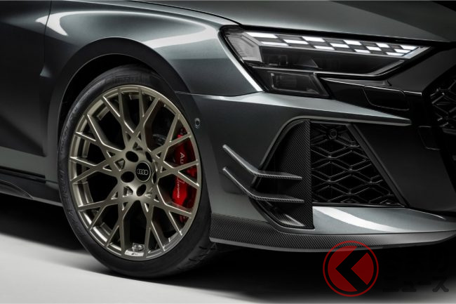「400馬力」の2.5リッター「ターボ」搭載! 新「4WD“スポーツカー”」初公開! トヨタ「GRカローラ」サイズの全長4.4m級ボディ採用! 内外装が“超スポーティ”なアウディ「RS 3コンペティション リミテッド」独国で登場