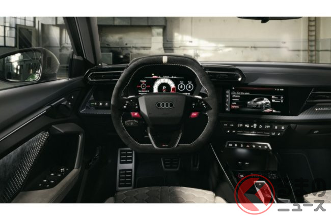 エクステリアは、カーボン製パーツをふんだんに用いて凄みを増しています。ボディサイズは、RS 3スポーツバックが全長4389mm×全幅1851mm×全高1436mm、セダンが全長4542mm×全幅1851mm×全高1412mmです。これは、国産の本格4WDスポーツであるトヨタ「GRカローラ」(全長4410mm×全幅1850mm×全高1480mm)とほぼ同じ、日本の道路事情でも扱いやすいサイズ感に収まっています。