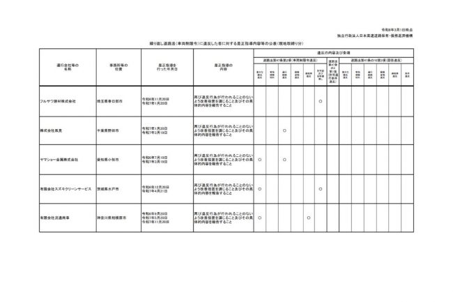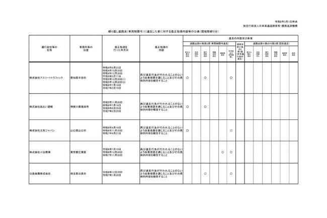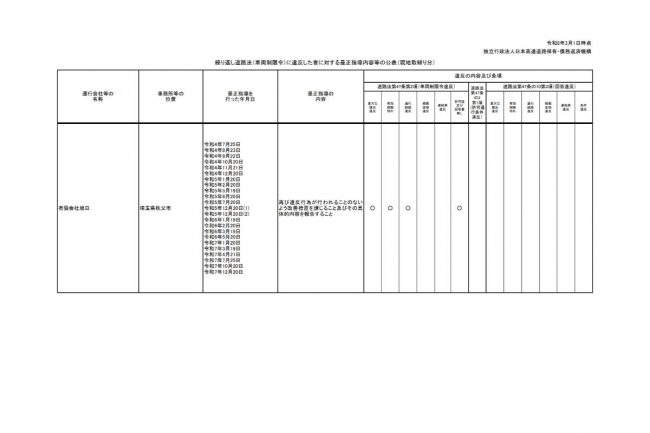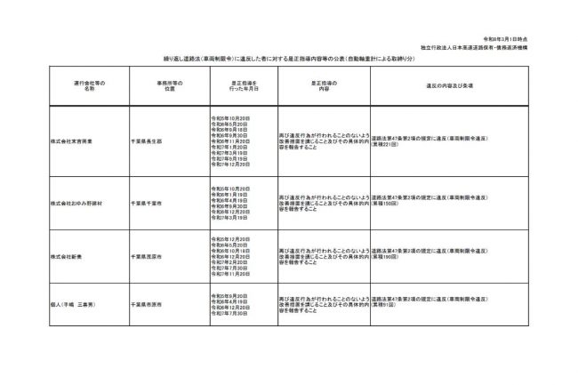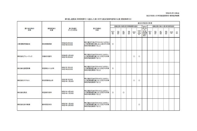 今回、NEXCO西日本では、日本高速道路保有・債務返済機構(高速道路機構)のサイト上で、車限違反を繰り返し、是正指導を行った事業者名を公表しています。