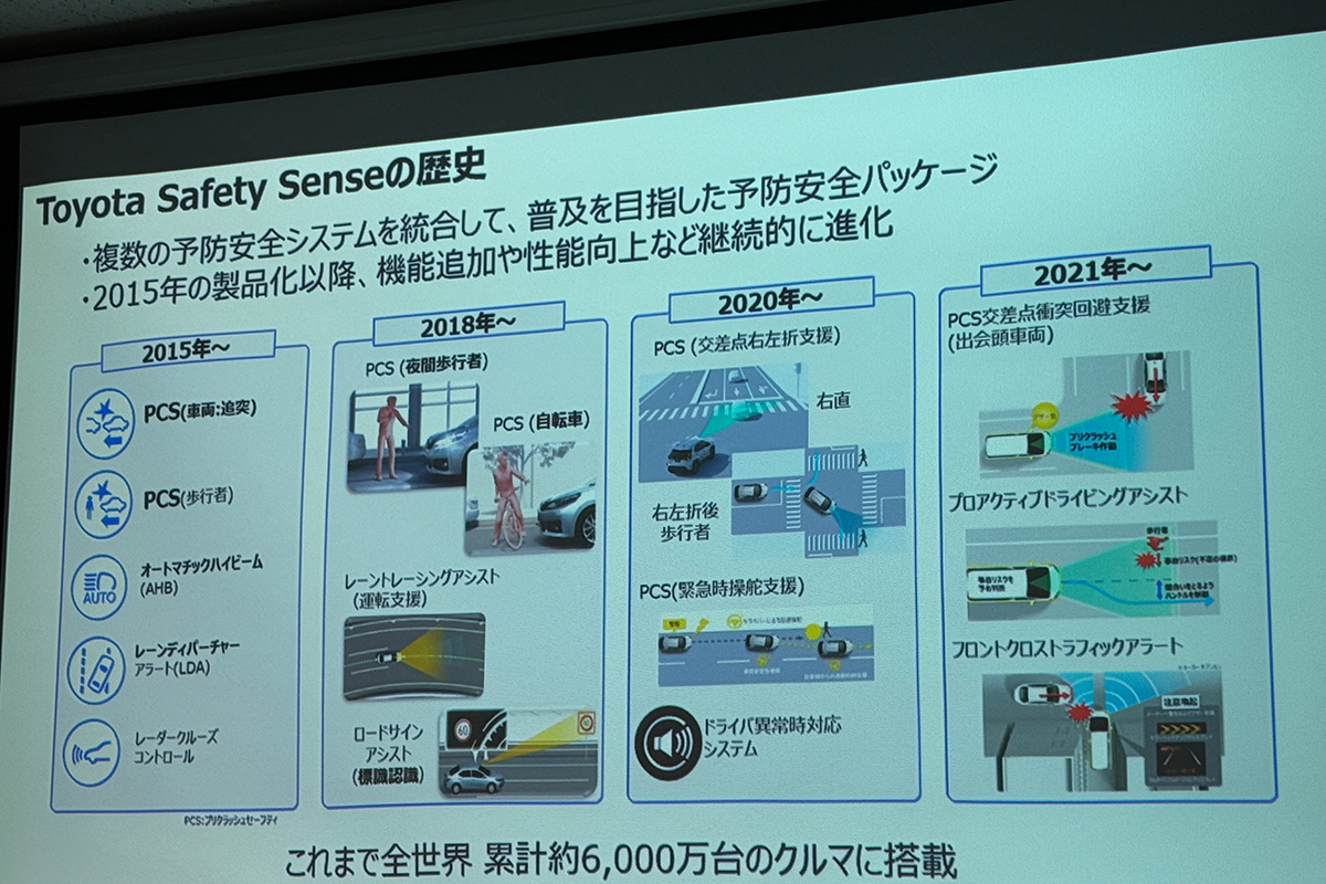 2015年に登場したトヨタの予防安全パッケージ「Toyota Safety Sense(TSS)」は、これまでに世界で約6000万台に搭載されています。