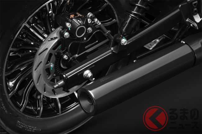 外観は、Vツインエンジン、前後16インチタイヤ、大型の丸型ヘッドライト、そして二本出しのエキゾーストといった王道のデザインが特徴です。特に、左右独立管としたロングマフラーは、低く歯切れのよい排気音を響かせ、ライディング時の高揚感を高めます。