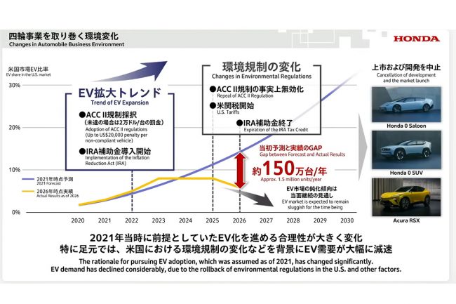 EV&燃料電池車への“全振り”を改め、それに伴う投資や将来の損失を前倒しで計上したホンダは、一体どこへ向っていくのでしょうか。2026年に登場予定の新型車を通して、その行方を追います。