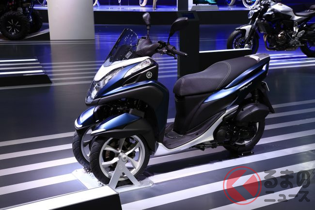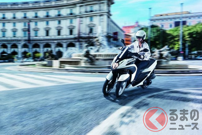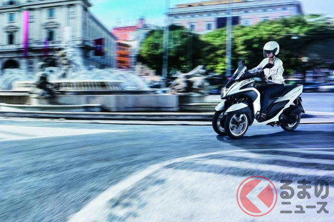 大島優子さんも乗ったヤマハ「“前2輪”スクーター」! 独自の“LMW”機構搭載で“倒れにくい”車両を実現! デザイン性にも優れた「トリシティ MW125」ってどんなバイク?