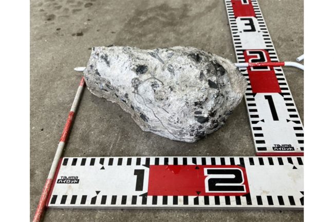 大きさや石の性質、落ちていた状況からするに、その辺に落ちていたものではなく、土木工事の現場で発生したもので、土砂を運搬するダンプが落とした可能性が高そうです。当事者は落としたことに気づかなかったのかもしれません。