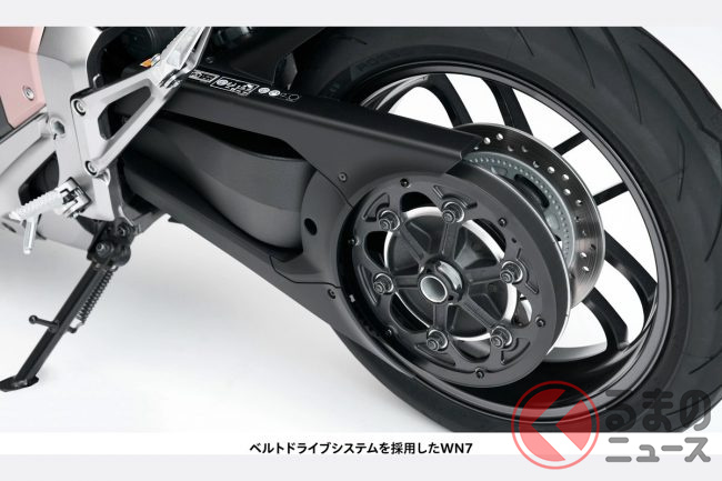 ホンダ「“新”ネイキッドモデル」日本初公開! フレームレス構造&横一文字ライト採用でスタイリッシュな姿に! 1000ccクラスに匹敵する強大トルクを発揮する電動バイク「WN7」大阪MCSに登場