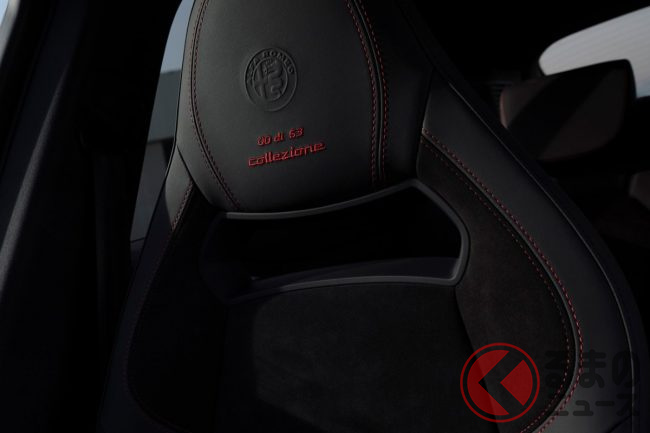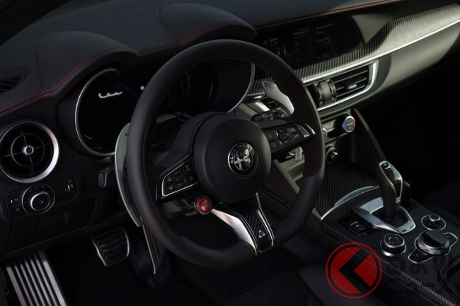 また、足回りには優れた制動性能と耐久性を備えるカーボンセラミックブレーキを採用。ブレンボ製のブラックキャリパーには、高い耐久性と放熱性を備えるアノダイズド加工(アルマイト加工)が施され、赤い「Alfa Romeo」ロゴが輝きます。