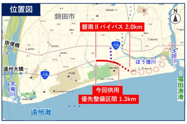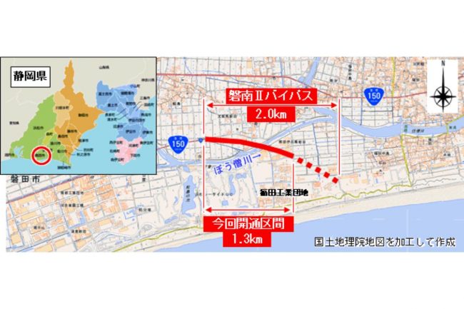 2026年3月22日、静岡県磐田市で国道150号「磐南IIバイパス」の一部区間が開通します。開通によってどのような効果がもたらされるのでしょうか。