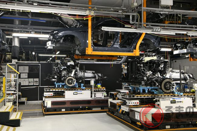 防府第二工場では、時間当たりの生産台数を示す値が「38.5JPH」、つまり「1.56分に1台」という能力を持ちます。そうした大量生産を行うなか、微細な組み付け精度の追求も両立していることは、エンドユーザーにとって、他メーカーにはない大きな魅力といえそうです。