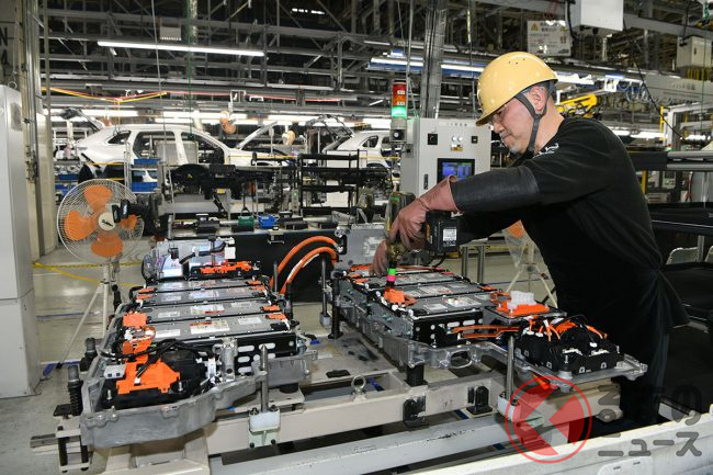 ラージ商品群はガソリンやディーゼルエンジンを搭載する内燃機関車のほかに、マイルドハイブリッドや、PHEV(プラグインハイブリッド)モデルもありますが、ライン(生産ライン)の改修を行ったことで、同じライン上で多様な車種を生産できる「混流生産」を実現しています。