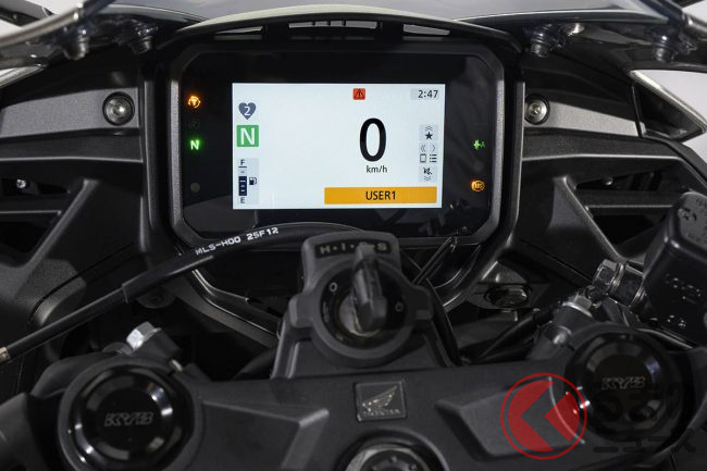先進的なインターフェースも備わっており、視認性に優れた5インチTFT液晶メーターにはスマートフォン連携機能「Honda RoadSync」が搭載されています。これにより、ナビゲーションや着信といった情報をメーター上でスマートに確認することが可能です。