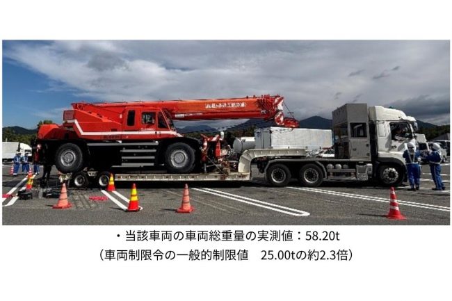 重量を計測したところ、MAXの制限が25tであったことに対し「58.2t」と、基準の「33.2tオーバー」という、とてつもないものでした。