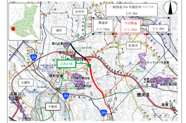 市街地の渋滞をショートカット! 圏央道へスムーズに接続! 国道354号「境岩井バイパス」3月25日に開通へ 茨城県