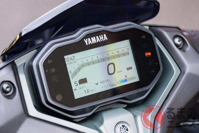 この先進的なディスプレイは、ヤマハのモーターサイクル用スマートフォンアプリ「Y-connect」との連携も可能です。スマートフォンと接続することで、メッセージや電話の着信通知をメーターに表示したり、Googleマップを活用したターンバイターン方式のナビゲーションシステムを利用したりでき、ツーリング時の利便性が大幅に向上します。