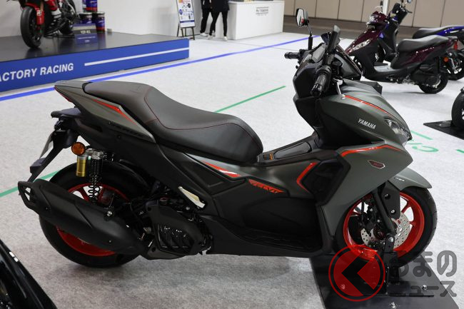 ヤマハ「高速も乗れる“新”小排気量スクーター」日本導入! スーパースポーツ「YZF-R1M」譲りのフロントフェイス&“ターボ感”味わえるパワートレイン採用! 軽二輪モデル「Aerox」大阪MCSで公開
