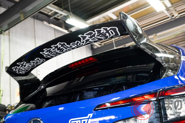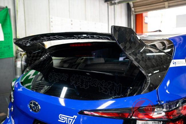 伊藤監督が「特徴的なのはリアウィングと、リアのクォーターガラスにあるダクトです」と述べる通り、リアウィングは航空宇宙カンパニーとの共同開発によるもので、素材には再生カーボン(CFRP)を使用。また、リアのクォーターガラス部分に設けられたダクトは、リアデファレンシャルのクーラーへ冷却風を導くための専用装備です。