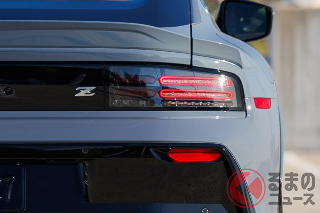 グリルの開口部をボディ同色のバーが横切る造形となり、フロントノーズのエンブレムは「日産マーク」から誇り高い「Zエンブレム」へと変更されました。