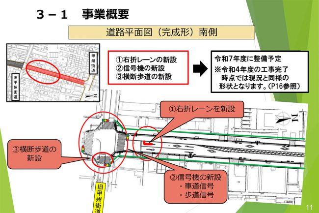 今回の開通に合わせ、甲州街道との接続部には右折レーンや新たな信号機が設置され、安全かつスムーズな交通流の処理が図られています。