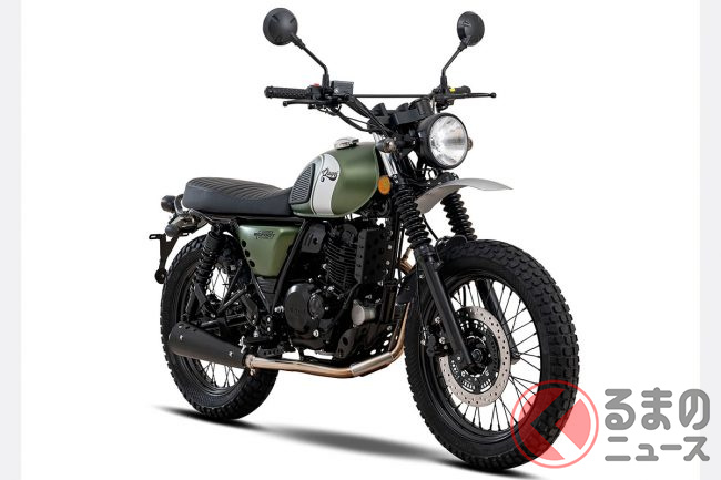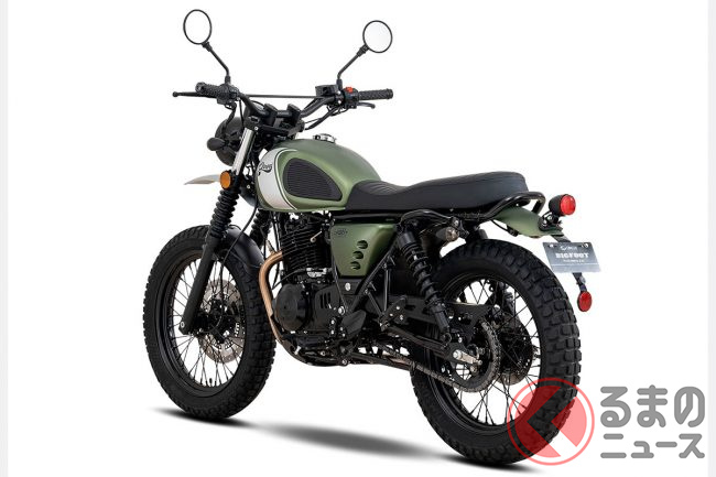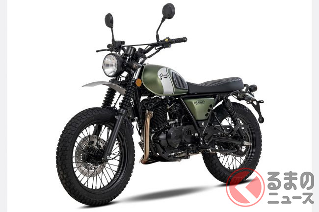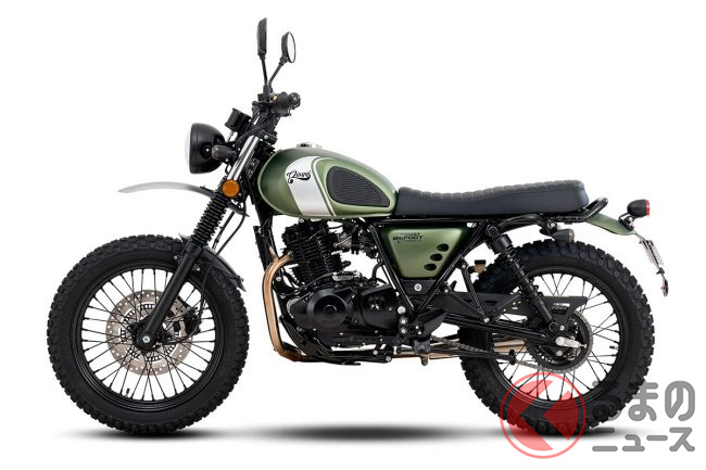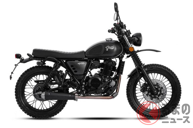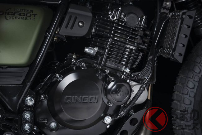 価格52万円! クインキー「“新型”軽二輪スクランブラー」国内導入! クラシカル外装&シンプル単気筒エンジンで気負わずに楽しめる「BIGFOOT250 Scrambler」登場