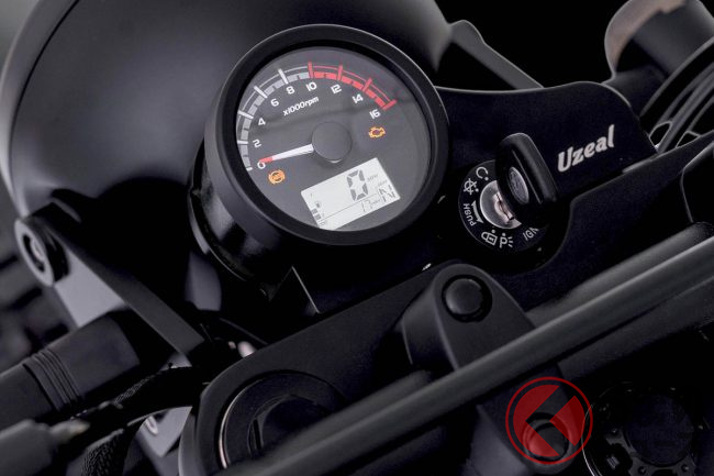 メーターは、スクランブラーの雰囲気に合わせたコンパクトなコンビネーションタイプです。指針式のタコメーターがクラシカルなムードを演出し、操る楽しさを高めます。