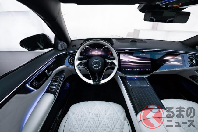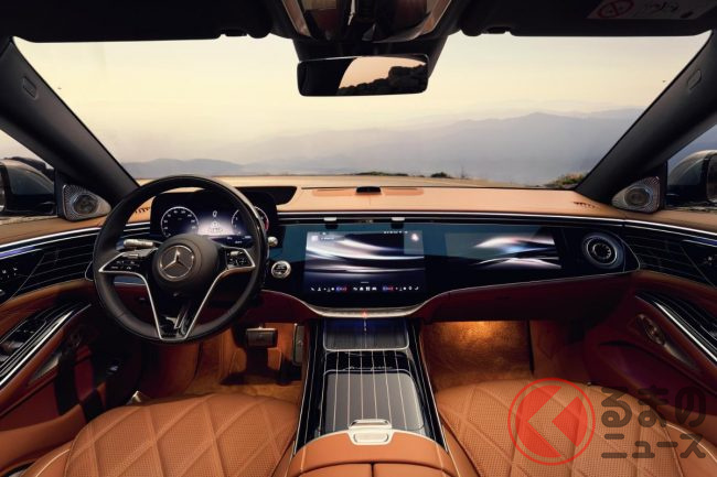 最大の見どころは、ダッシュボード全面を覆う巨大な「MBUXスーパースクリーン」の採用です。