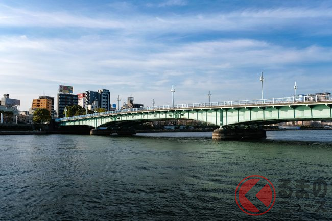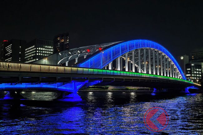 国道6号“水戸街道”の「言問橋」が“メチャおしゃれ”に大変貌! 浅草〜スカイツリー間の「りっぱな橋」が「ライトアップ」実施で名所に! 美しすぎる「景観照明」27日から点灯
