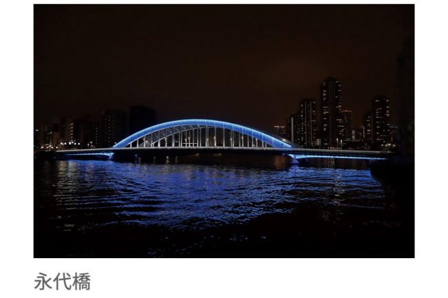 そうしたことから、新大橋通りの「新大橋」や永代橋通りの「永代橋」など、メインとなる大通りの橋はそれぞれ異なる色のライトアップが実施されており、観光名所となっているほか、隅田川で運行される屋形船の見どころポイントになっています。