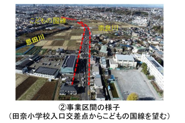 該当の市道は、地元のあかね台中学校や田奈小学校の通学路に指定されているにもかかわらず、歩道が狭いため、児童や生徒をはじめとする歩行者の安全確保が地域における課題とされていました。