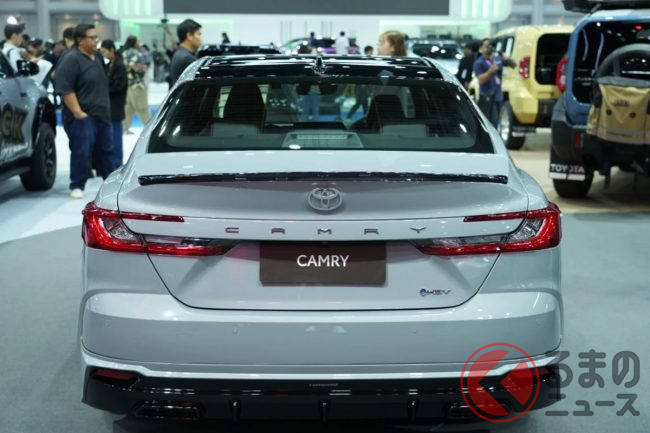 リッター25km走るトヨタ「“最新”サメ顔セダン」! 北米デザイン&充実装備に注目! 日本への導入も予定されている「カムリ」がバンコクモーターショーに登場!