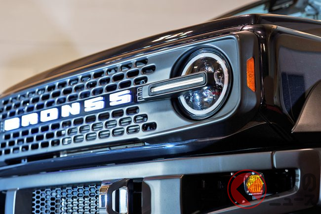 ジムニーの純正状態ではライトが内側に寄りすぎており、ブロンコのようなワイドで堂々とした表情を再現できません。