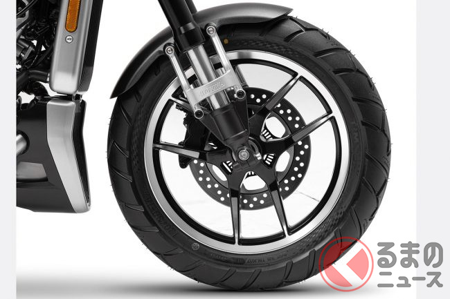 ホイールは切削加工が施されたキャストホイール(前16インチ/後15インチ)で、軽いダートも走破できるブロックパターン風のファットタイヤが装着されています。