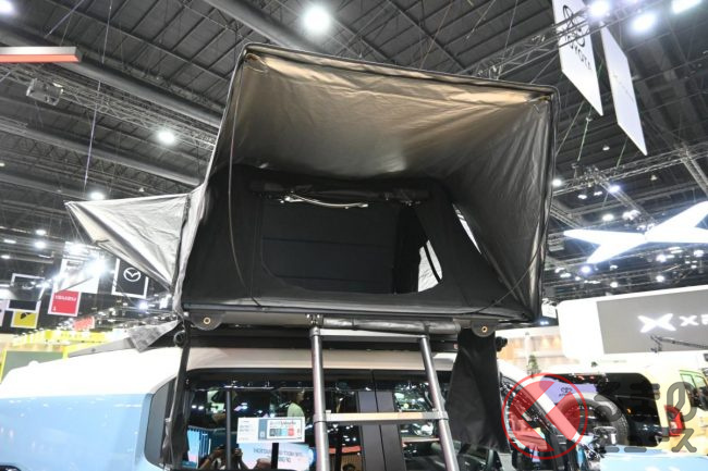 現地モーターショーで高い注目を集めていたのが「ナチュール・エクスプローラー(The Nature Explorer)」です。これはルーフの上に組み立て式のテントを搭載したもの。いわば移動式ベースキャンプです。