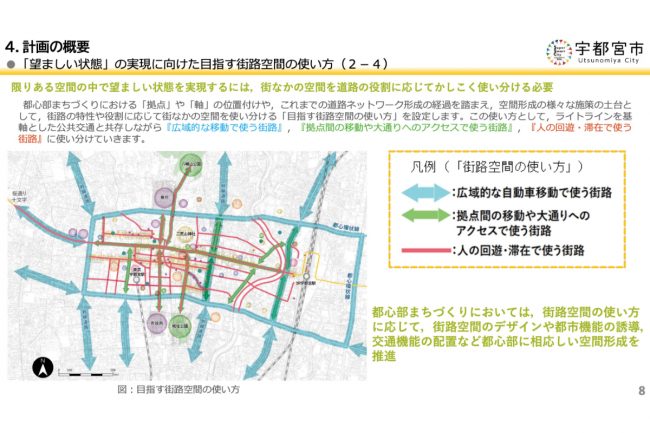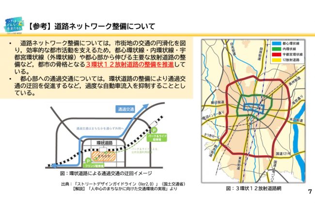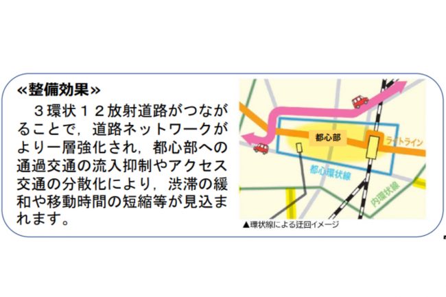 都心環状線を活用して大通りを通らずに迂回できるルートが形成されることで、中心部の車の流れが円滑になり、市街地が歩きやすい空間へと変化していくことが計画されています。