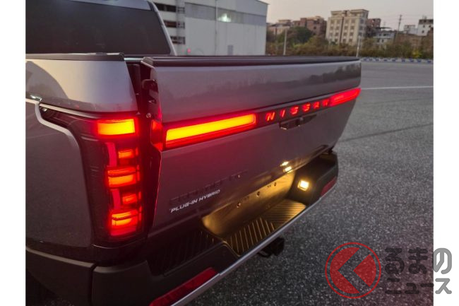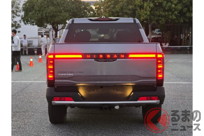 パワートレインは日産初の電動ピックアップで、4気筒1.5Lターボにトランスミッション内蔵2モーターを組み合わせたプラグインハイブリッドでシステム出力は300kW/最大800Nmを発揮。
