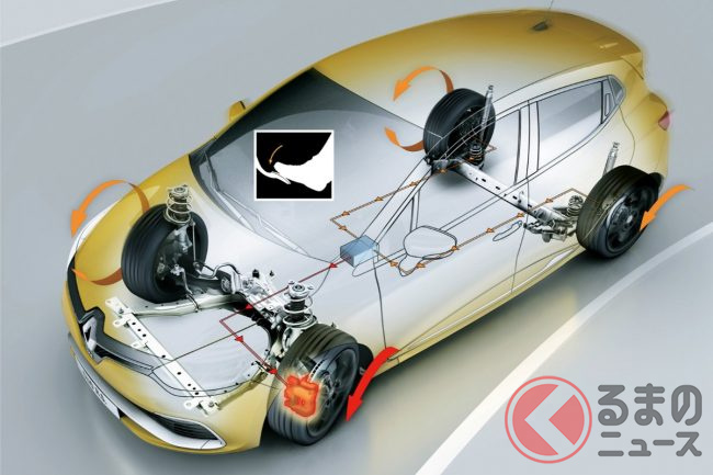 駆動方式はFF(前輪駆動)ですが、ルノー独自の電子制御「R.S.デフ」がタイヤの空転を抑え、異次元のコーナリングスピードを実現。