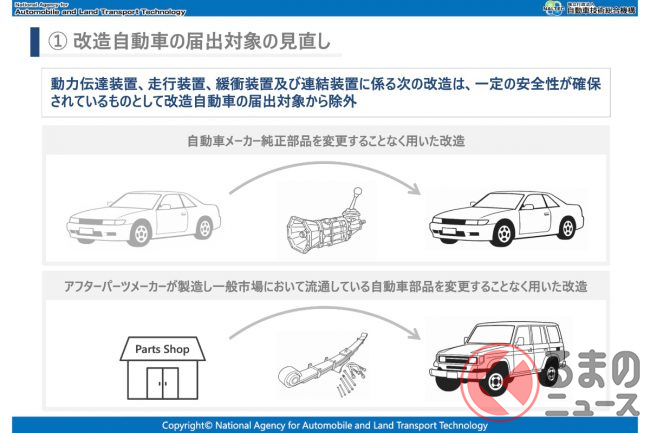 純正流用やアフターパーツの「事前届出」が不要に