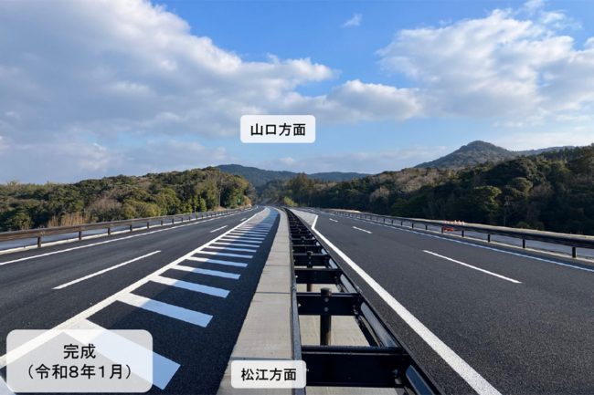 この開通により、島根県西部の江津・浜田・益田間が1本の道路として接続されることになり、日本海側を横断する広域ネットワークの構築が一段と加速します。